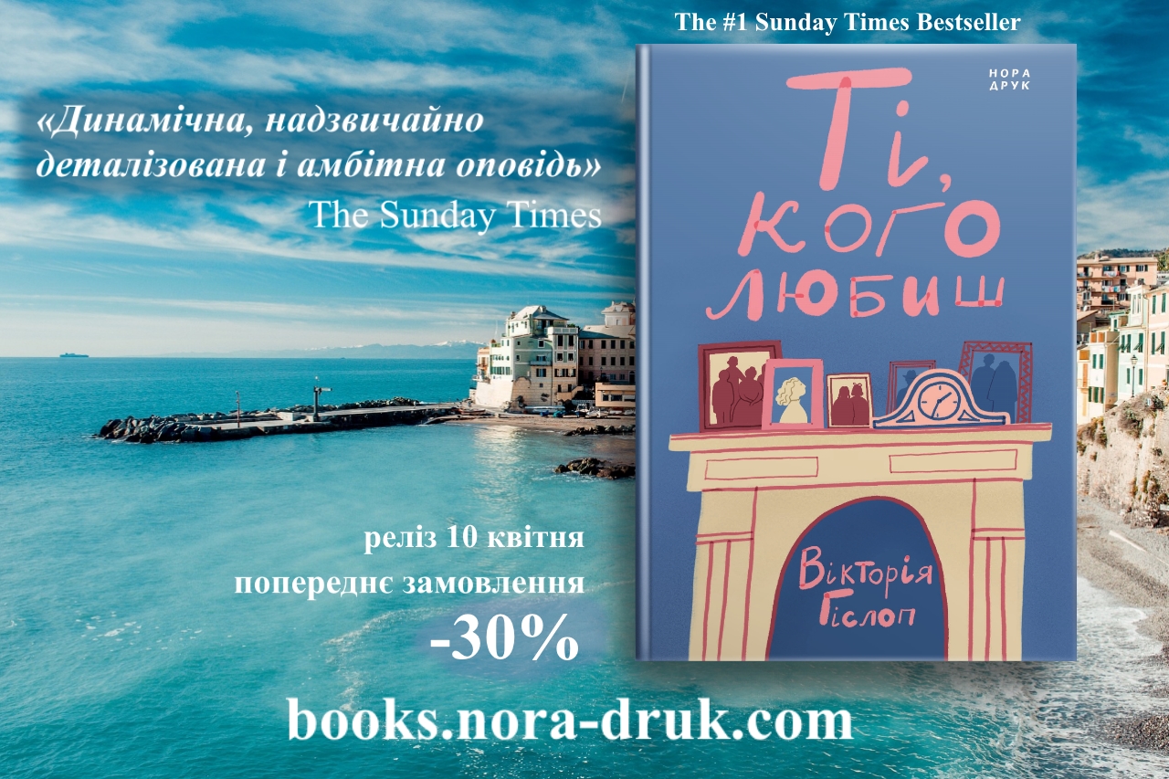Ті, кого любиш : Роман / Вікторія Гіслоп ; пер. з англ. Наталії Ференс. — К. : Нора-Друк, 2024. — 416 с. ISBN 978-966-688-153-6. Тв. обкладинка. Художниця Олена Шум.