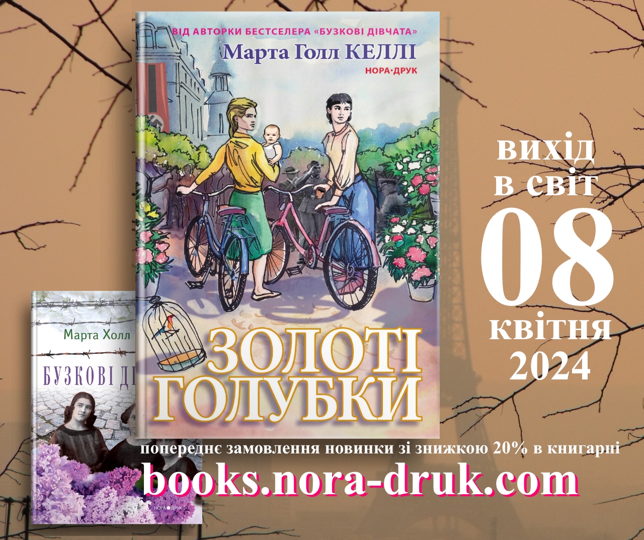 Золоті Голубки : Роман / Марта Голл Келлі ; пер. з англ. Наталі Тисовської. — К. : Нора-Друк, 2024. — 544 с. Тверда обкладинка. Художник Юрій Волгін.