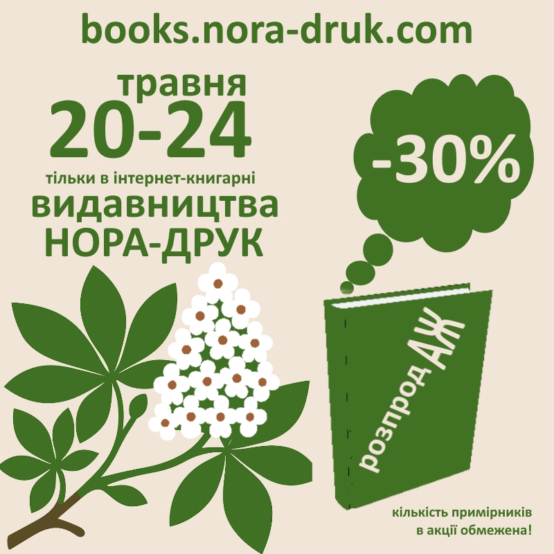 В інтернет-книгарні видавництва НОРА-ДРУК оголошуємо розпродаж: -30% на всі книжки з 20 по 24 травня 2025 включно!