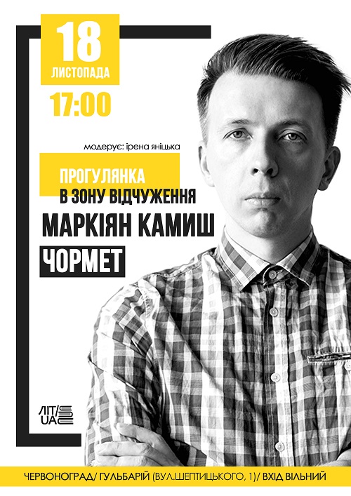 Запрошуємо на презентацію повісті «Чормет» та інших книжок про Чорнобильську зону Маркіяном Камишем в Чорвонограді, яка відбудеться 18 листопада.