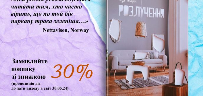 30 травня вийде в світ українською мовою (перекладачка Наталія Іваничук) шведський бестселер — роман «Розлучення» авторки захопливих драм про сімейні стосунки Муа Гернґрен. Її книжки…